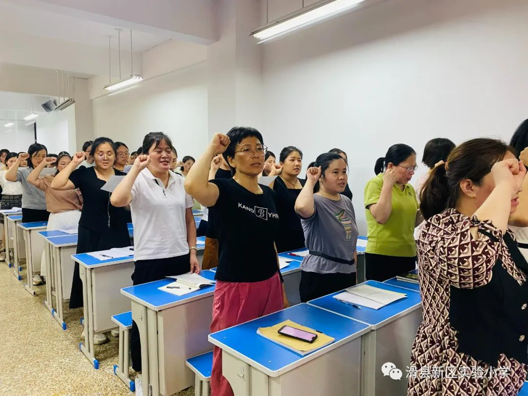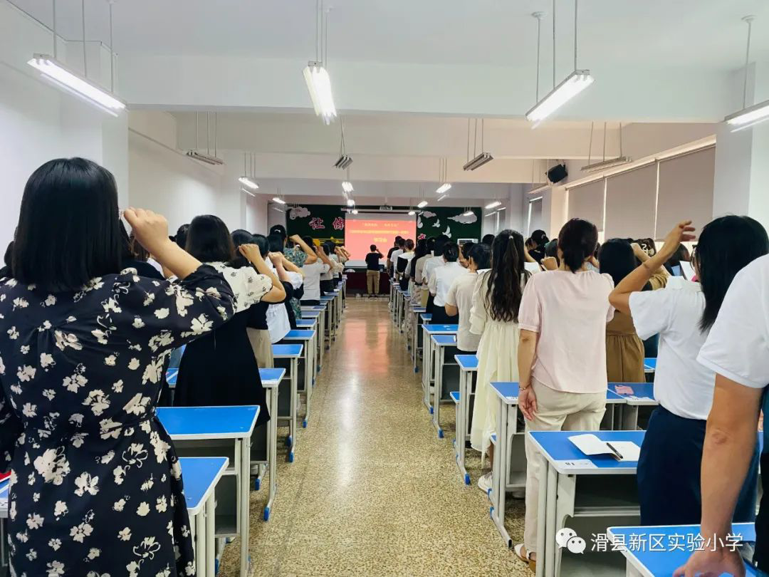 随后,在王媛君校长的带领下,全体教师宣誓:我志愿成为一名人民教师,忠诚党的教育事业,遵守教育法律法规,履行教书育人职责,引领学生健康成长,做到有理想信念、有道德情操、有扎实学识、有仁爱之心,为教育发展、国家繁荣和民族振兴努力奋斗!